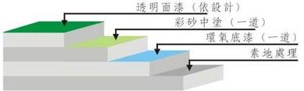 施工工藝:①防水處理:一樓地面需已做好防水處理;②素地處理:依素地狀況做好打磨、修補(bǔ)、除塵;