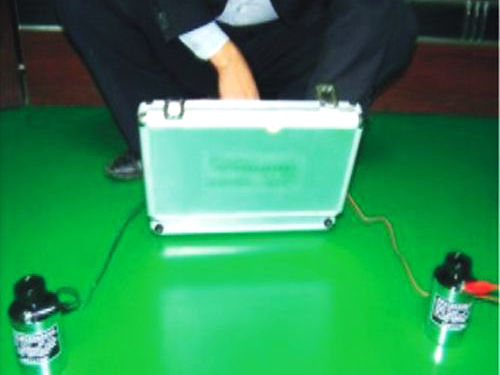 ⑦防靜電面漆:防靜電自流平地坪漆鏝一道或滾涂面二道,其體積/表面電阻平均系數(shù)值105Ω~109Ω,完工后整體地面光亮潔凈,顏色均一,無空鼓;
